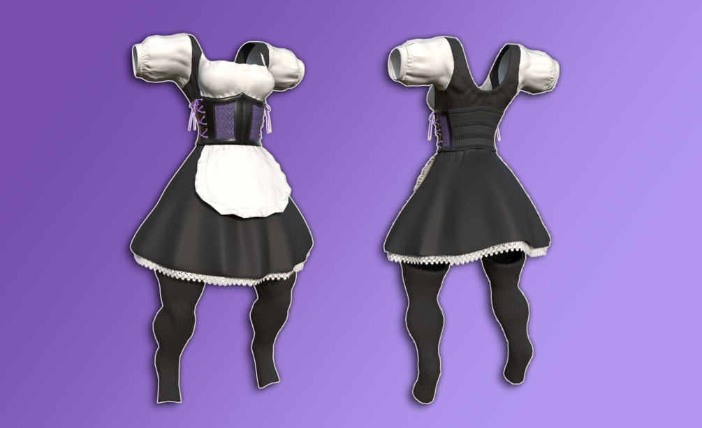 Featuring a full dress with skirt physics, some thigh-highs (can't miss those) and a pair of underwear (both female and male) that you can toggle indipendently.